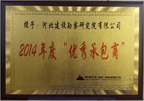 神華國華廣投(柳州)發(fā)電有限責(zé)任公司授予我公司2014年度“優(yōu)秀承包商”