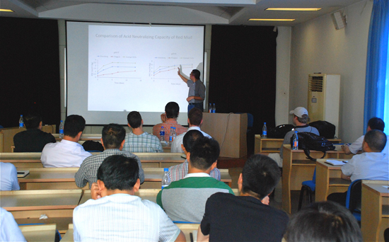 本次報(bào)告分為三個部分:胡偉博士介紹了赤泥地質(zhì)聚合物的最新研究成果;何強(qiáng)教授介紹了赤泥用于煙氣脫硫的最新研究成果;四名美國學(xué)生就各自的研究方向和在中國的見聞,對交通、環(huán)境的可持續(xù)發(fā)展進(jìn)行了介紹。報(bào)告會使我公司工程技術(shù)人員進(jìn)一步了解了赤泥研究課題取得的成果與進(jìn)展、巖土工程材料國際前沿動態(tài)、國際上的研究思路,同時(shí)也了解了美國人眼中的中國發(fā)展,此次到場參與報(bào)告的美方學(xué)生也表示有很大收獲。