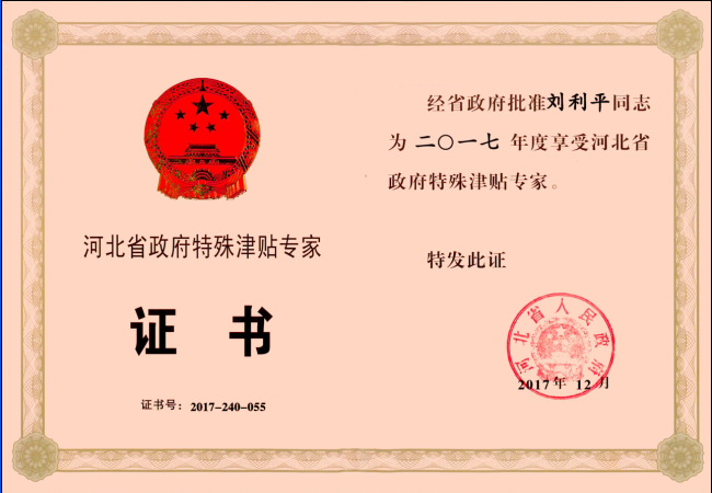 經(jīng)公司推薦申報、市人力資源和社會保障局初評、省人力資源和社會保障廳組織專家綜合評委會評審,報省委人才工作領(lǐng)導小組審核、省政府批準,公司副總經(jīng)理劉利平榮獲省政府特殊津貼專家稱號。