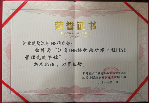 由于我公司的出色表現(xiàn),總包方中國寰球工程有限公司北京分公司對我公司和個人進行了表彰,授予我公司“質(zhì)量管理先進單位”和“HSE管理先進單位”,并對周進發(fā)、朱凱云、李友峰授予了“優(yōu)秀項目管理者”稱號,對賈沖、冀紫豪、任書星、李昭、張勇、張旺授予了“質(zhì)量管理先進個人”稱號,對劉志峰、辛朝友、邢鐸、付嘉嘉、宋江來授予了“HSE管理先進個人”稱號,分別頒發(fā)了錦旗、榮譽證書、獎牌。