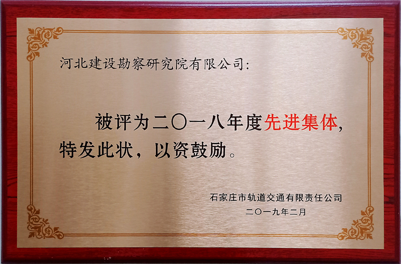 我公司作為石家莊地鐵監(jiān)測服務(wù)單位,在監(jiān)測過程中,精心組織設(shè)計、安全文明施工,積極與業(yè)主和相關(guān)單位溝通協(xié)作的工作作風贏得了業(yè)主的高度認可;在大會上石家莊市軌道交通有限責任公司對我公司和個人進行了表彰,特授予我公司“二零一八年度先進集體”榮譽獎牌,并授予我公司曹崇、張樹森、李延彬同志“先進個人”榮譽稱號。石家莊軌道交通有限責任公司希望我公司一如既往、繼續(xù)發(fā)揚優(yōu)良工作作風,并希望在今后的工作中,繼續(xù)與我公司攜手合作,再創(chuàng)佳績!