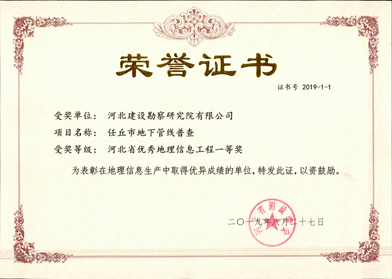 近日,由我公司完成的“任丘市地下管線普查項(xiàng)目”榮獲河北省測(cè)繪學(xué)會(huì)優(yōu)秀地理信息工程一等獎(jiǎng),“江蘇大唐國(guó)際呂四港有限責(zé)任公司廠區(qū)沉降觀測(cè)”、“浙江大唐烏沙山發(fā)電廠主要建(構(gòu))筑物沉降觀測(cè)”項(xiàng)目榮獲河北省測(cè)繪學(xué)會(huì)優(yōu)秀地理信息工程二等獎(jiǎng)。