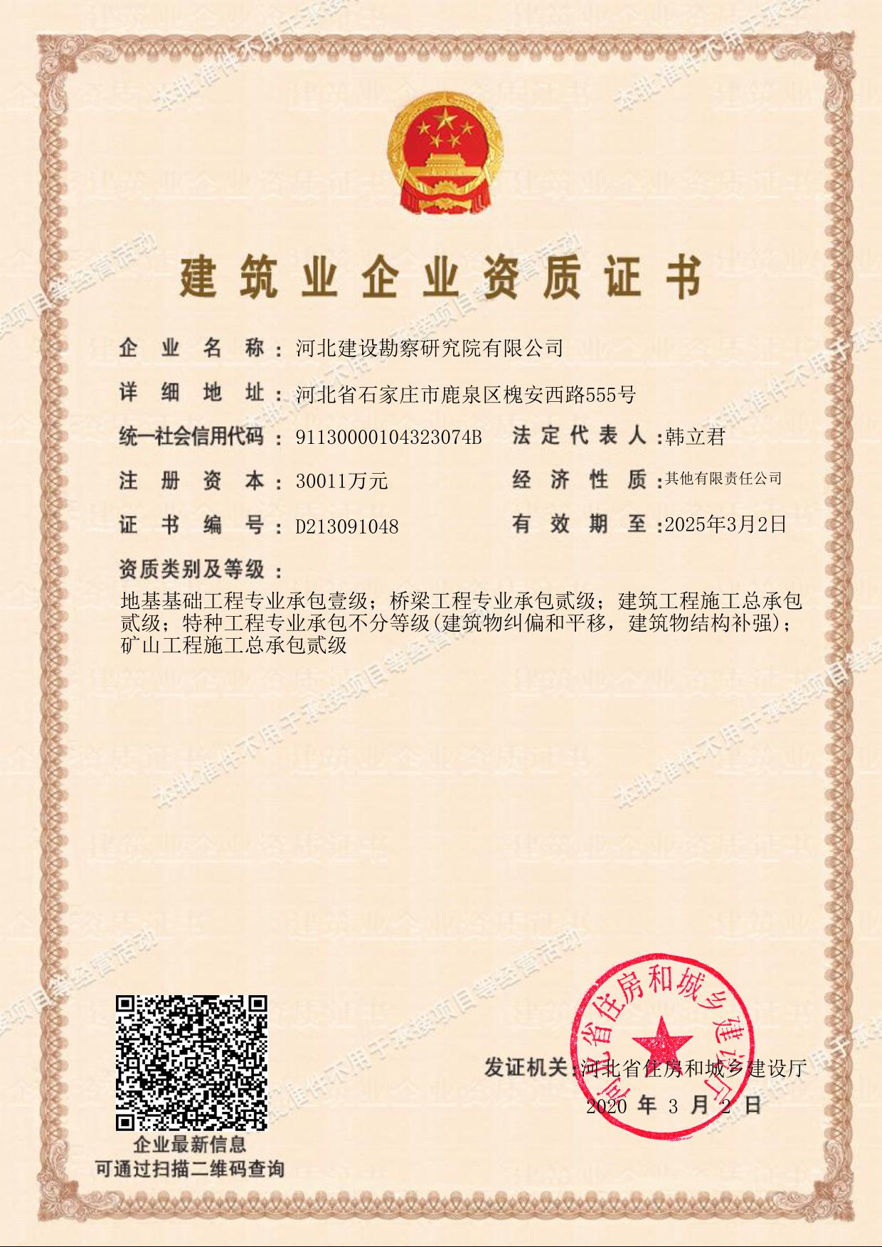 公司獲得建筑工程施工總承包貳級資質(zhì)證書