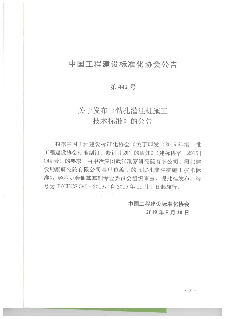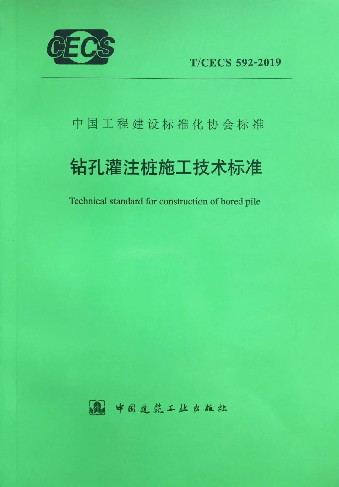 近日,我公司主編的中國工程建設(shè)標準化協(xié)會標準《鉆孔灌注樁施工技術(shù)標準》(T/CECS 592-2019)由中國建筑工業(yè)出版社正式出版發(fā)行,于2019年11月1日起實施。