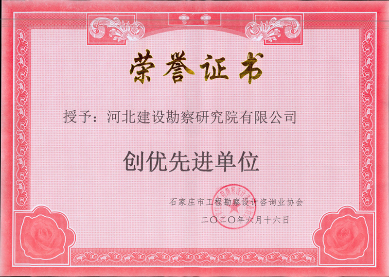 2020年6月22日,石家莊市工程勘察設(shè)計(jì)咨詢業(yè)協(xié)會(huì)下發(fā)文件《關(guān)于公布2020年度優(yōu)秀工程勘察設(shè)計(jì)行業(yè)獎(jiǎng)評(píng)選結(jié)果的通知》(石設(shè)協(xié)字[2020]5號(hào)),我公司被授予“創(chuàng)優(yōu)先進(jìn)單位”稱號(hào);公司申報(bào)的江蘇LNG接收站擴(kuò)建工程T-1206號(hào)LNG儲(chǔ)罐工程等6個(gè)項(xiàng)目獲評(píng)2020年度石家莊市優(yōu)秀工程勘察設(shè)計(jì)行業(yè)一等獎(jiǎng),巴基斯坦薩希瓦爾華能如意2×660MW燃煤電站項(xiàng)目地基加固處理工程等11個(gè)項(xiàng)目獲評(píng)2020年度石家莊市優(yōu)秀工程勘察設(shè)計(jì)行業(yè)二等獎(jiǎng),霸州市生活垃圾焚燒發(fā)電廠項(xiàng)目樁基施工工程等8個(gè)項(xiàng)目獲評(píng)2020年度石家莊市優(yōu)秀工程勘察設(shè)計(jì)行業(yè)三等獎(jiǎng)。