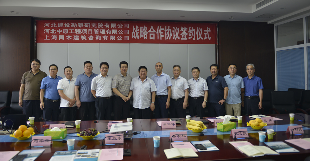 7月29日,河北建設(shè)勘察研究院有限公司、河北中原工程項目管理有限公司、上海同木建筑咨詢有限公司戰(zhàn)略合作協(xié)議簽約儀式,在我公司舉行。