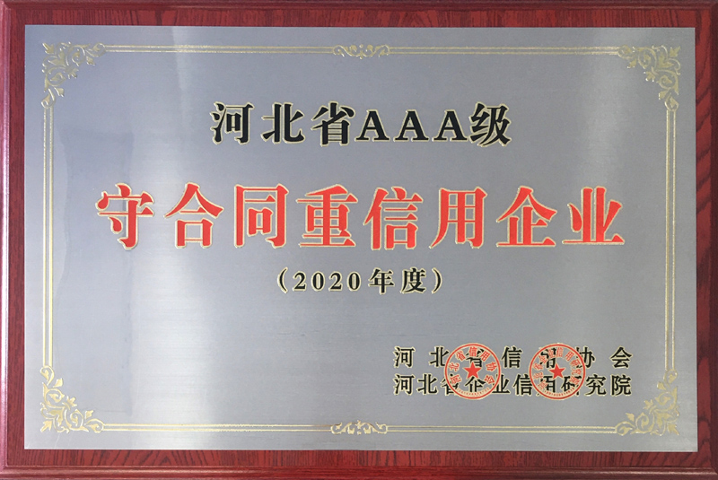 我公司獲得“2020年度河北省AAA級守合同重信用企業(yè)”榮譽