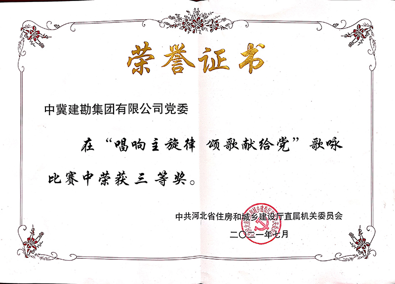 為慶祝中國(guó)共產(chǎn)黨建黨100周年,謳歌建黨百年的光輝歷程和豐功偉績(jī),今年以來(lái),公司開(kāi)展了建黨百年系列慶?;顒?dòng),并積極響應(yīng)上級(jí)黨組織工作安排,先后參加了由省直工會(huì)組織開(kāi)展的“永遠(yuǎn)跟黨走•唱支山歌給黨聽(tīng)”網(wǎng)絡(luò)歌詠活動(dòng)和省住房和城鄉(xiāng)建設(shè)廳舉辦的“唱響主旋律 頌歌獻(xiàn)給黨”歌詠比賽,用嘹亮的歌聲和飽含深情的演唱充分展示了中冀建勘人積極向上的精神風(fēng)貌,并在比賽中取得優(yōu)秀的成績(jī)。