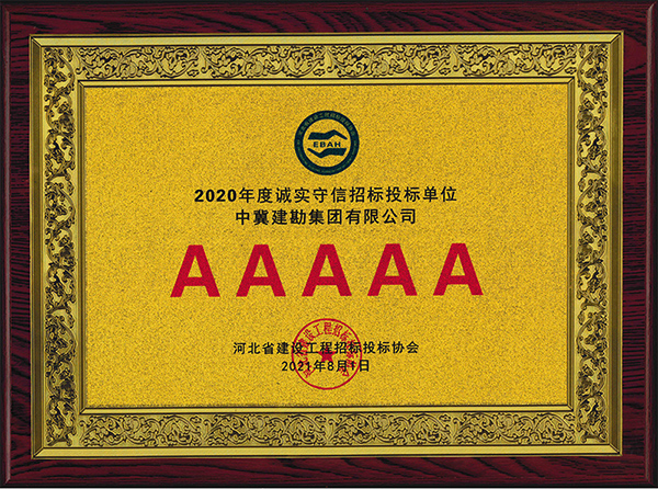公司獲評(píng)2020年度河北省建設(shè)工程招標(biāo)投標(biāo)誠(chéng)實(shí)守信5A級(jí)施工企業(yè)