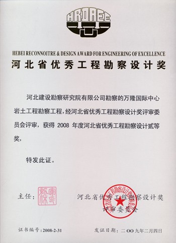萬隆國際中心巖土工程勘察獲河北省優(yōu)秀工程勘察設(shè)計二等獎。
