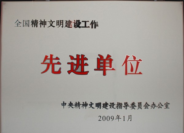 近年來,我公司堅(jiān)持以科學(xué)發(fā)展觀為指導(dǎo),在全體員工中積極開展精神文明創(chuàng)建活動,文明施工程度和員工素質(zhì)不斷提高,精神文明建設(shè)取得顯著成績。近日,我公司受到中央精神文明建設(shè)指導(dǎo)委員會辦公室表彰,被授予“全國精神文明建設(shè)工作先進(jìn)單位”稱號。