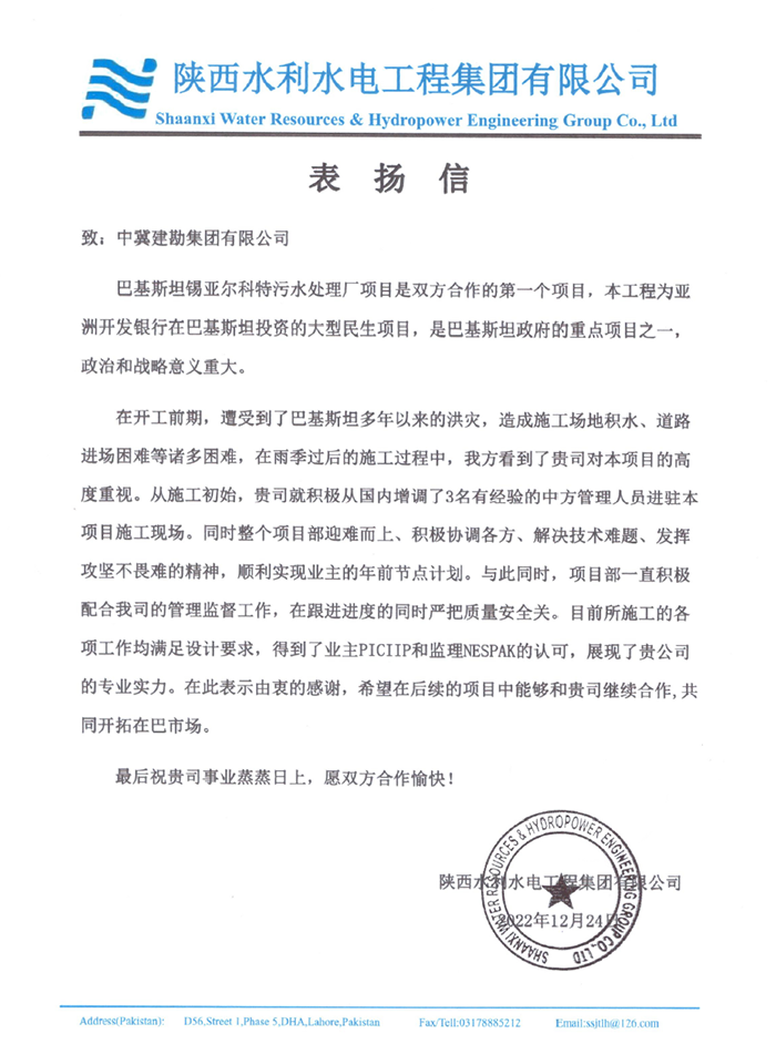 巴基斯坦錫亞爾科特污水處理廠項(xiàng)目是我方和陜西水利水電工程集團(tuán)有限公司合作的第一個(gè)項(xiàng)目,是亞洲開發(fā)銀行在巴基斯坦投資的大型民生項(xiàng)目,是巴基斯坦政府的重點(diǎn)項(xiàng)目之一,政治和戰(zhàn)略意義重大。在工程前期,遭受到了巴基斯坦多年以來(lái)的洪災(zāi),造成施工場(chǎng)地積水、道路進(jìn)場(chǎng)等諸多困難。我們整個(gè)項(xiàng)目部高度重視,迎難而上、積極協(xié)調(diào)各方、解決技術(shù)難題、發(fā)揮攻堅(jiān)不畏難的精神,順利實(shí)現(xiàn)業(yè)主的年前節(jié)點(diǎn)計(jì)劃。目前施工的各項(xiàng)工作均滿足設(shè)計(jì)要求,得到了業(yè)主PICIIP和監(jiān)理NESPAK的認(rèn)可,展現(xiàn)了我公司的專業(yè)實(shí)力。業(yè)主希望在后續(xù)的項(xiàng)目中能夠和我公司繼續(xù)合作,共同開拓巴基斯坦市場(chǎng)。