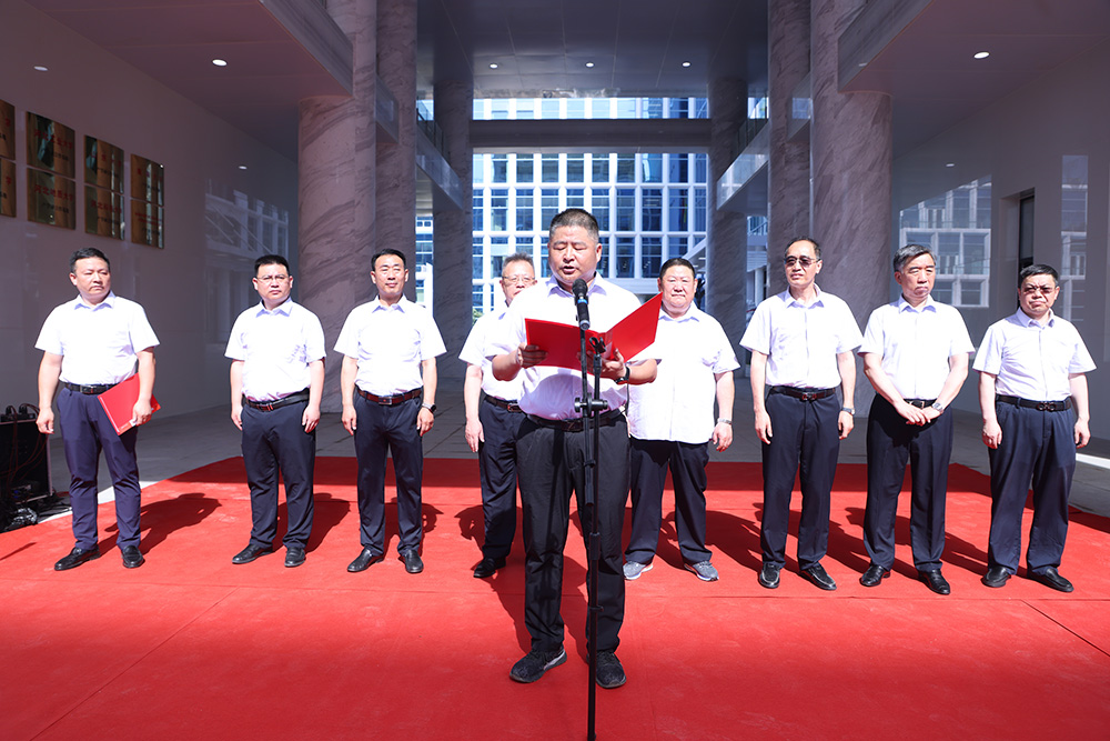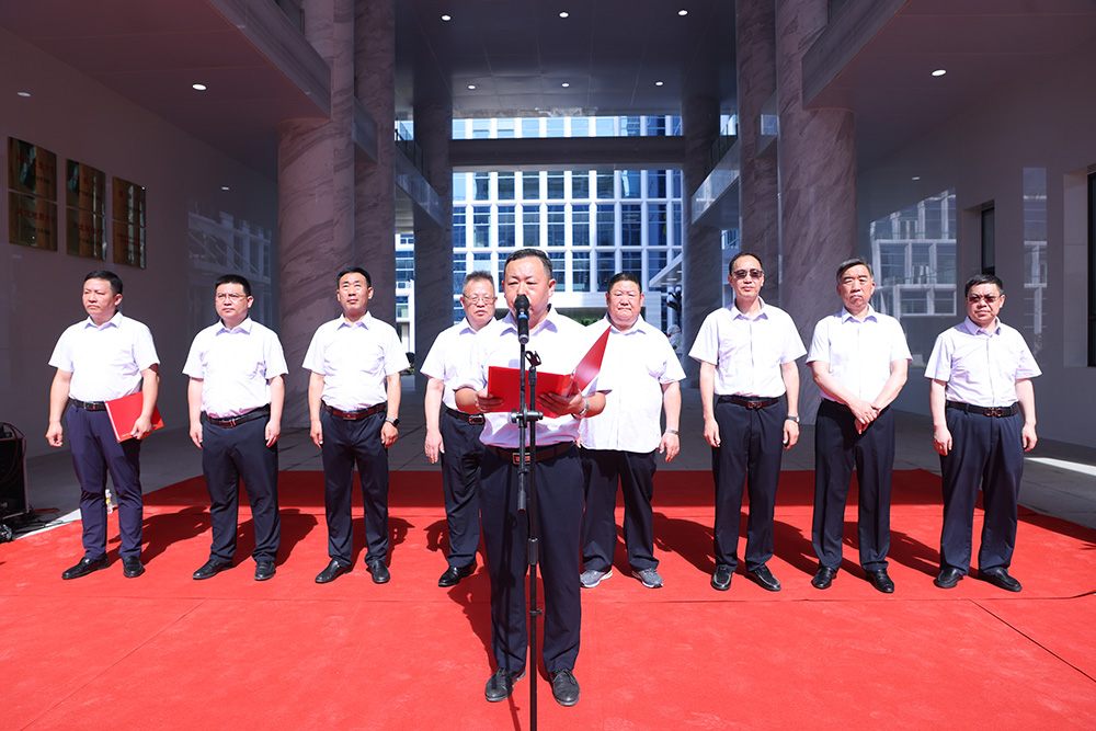 董事長韓立君、總經(jīng)理李華偉、退休老領(lǐng)導(dǎo)代表孟小省為新辦公樓剪彩