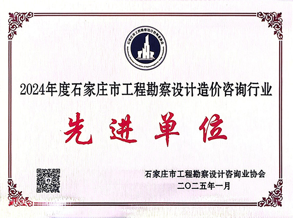 集團公司榮獲石家莊市工程勘察設(shè)計咨詢行業(yè)2024年度“先進單位”稱號