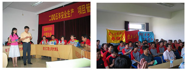 7月26日,公司工會(huì)、設(shè)備安全部、企業(yè)管理部、公司團(tuán)委舉辦了“2005年安全生產(chǎn)、項(xiàng)目管理知識(shí)競(jìng)賽”活動(dòng)。地下工程公司、巖土工程公司、基礎(chǔ)工程公司代表隊(duì)參加了本次活動(dòng),經(jīng)過激烈競(jìng)爭(zhēng),地下工程公司略勝一籌,捧得了“2005年安全生產(chǎn)、項(xiàng)目管理知識(shí)競(jìng)賽優(yōu)勝單位”獎(jiǎng)杯。省直工會(huì)、省建設(shè)廳工會(huì)領(lǐng)導(dǎo)作了重要講話,在講話中肯定了我公司多年來安全生產(chǎn)工作的成績(jī),對(duì)這次競(jìng)賽的成功舉辦給以了高度的評(píng)價(jià)。