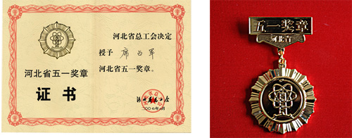 公司董事長、黨委書記席占軍同志被河北省總工會授予“河北省五一獎?wù)?rdquo;。
