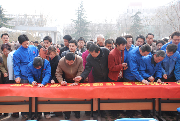 4月2日上午9時(shí),公司機(jī)關(guān)及在外的24個(gè)工程項(xiàng)目部共1500多名員工,在同一時(shí)間、不同地點(diǎn),隆重舉行2009年“安康杯”安全生產(chǎn)競(jìng)賽活動(dòng)啟動(dòng)儀式暨“強(qiáng)化預(yù)防,消除隱患,保障安全,促進(jìn)發(fā)展”主題簽名活動(dòng)。
