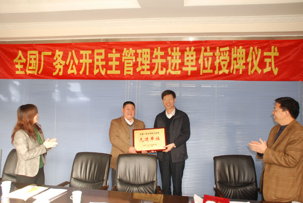 12月10日,省直工會(huì)范金龍主任陪同河北省總工會(huì)副主席劉書為等蒞臨我公司,頒發(fā)“全國(guó)廠務(wù)公開民主管理先進(jìn)單位”獎(jiǎng)牌、證書。全國(guó)榮獲此殊榮的共有408家,河北省直僅有我公司一家。